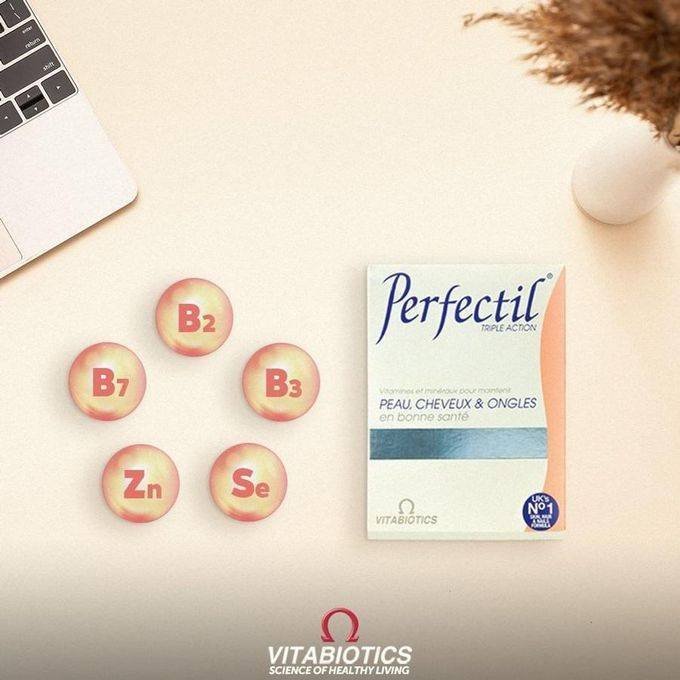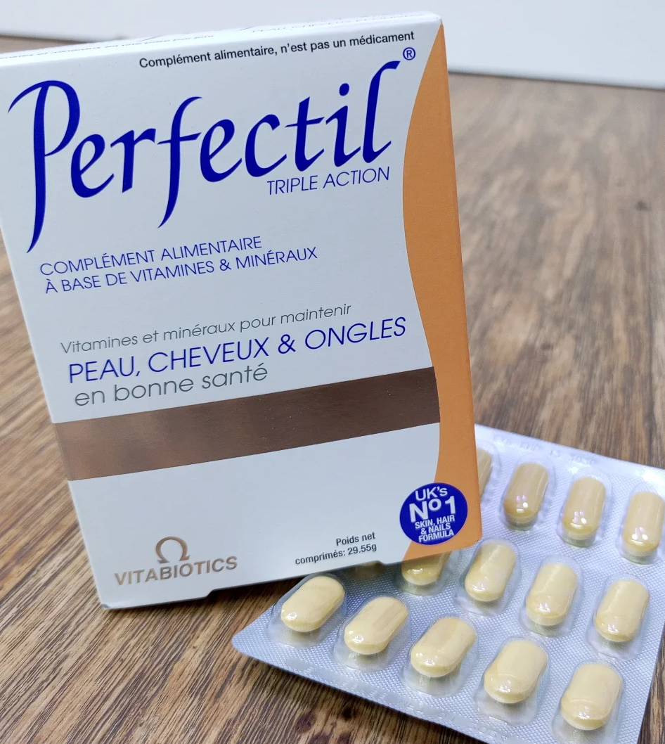 – Perfectil agit en fournissant des nutriments via la circulation sanguine – le niveau le plus profond – pour le revêtement cutané de la peau, les follicules pileux et les lits d’ongles.